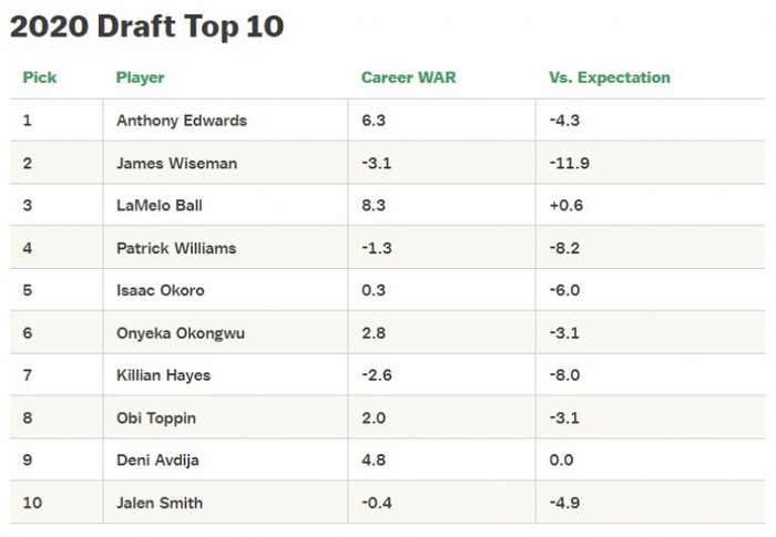 水货球员年年有,但像2020届如此众多并不多见。因为有太多背负极大期望的球员都没有打出符合联盟的表现。至少和预期的数据相比,2020年前十顺位或多或少没有达到标准。