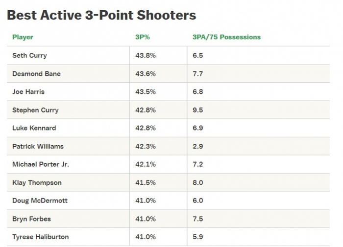 现役三分命中率排名