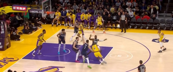 客观地说,湖人今天防得不错。东契奇35+14+13,数据单华丽,还有两记将比赛拖入加时,延续悬念的关键三分,表现不可谓不出众。但以东契奇这一季的水准,两个加时“只”拿35分,那又没什么稀奇了。湖人防东契奇的方式,更接近他们的“老版本”,在持球人单打下球那一刻上夹击,靠身后轮转尽量消除空位,消耗进攻时间,逼迫对手在24秒快耗尽时做高难度选择。这个策略不可能完美无瑕,但在独行侠外线回应不灵的时段,确实有一点进攻便秘的既视感,特别是在加布里埃尔在场的时段,整体轮转速度拉满,独行侠还真不好打。