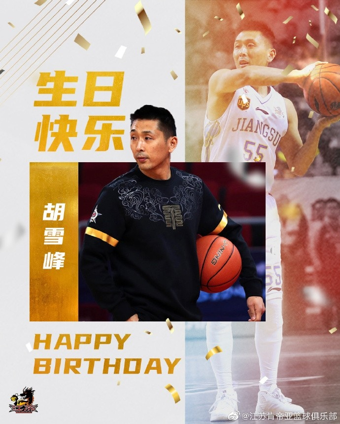 直播吧1月14日讯 今天是江苏男篮名宿胡雪峰的43岁生日,江苏队官方为其送上生日祝福。