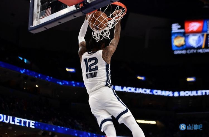 比赛中莫兰特奉献了一记石破天惊的战斧隔扣。
