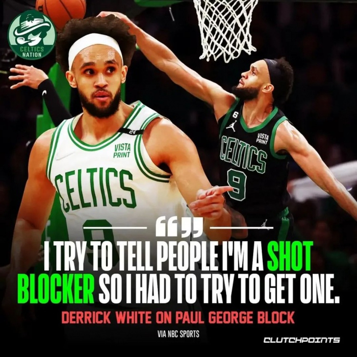 德里克-怀特跑到篮下补防,并没费太大力,就送了乔治一个大火锅。这也是直接决定比赛胜负的一记关键盖帽。凯尔特人116-110在主场报了此前输给快船的一箭之仇。全场比赛,怀特除了在进攻端8投6中砍下15分外,还送给了快船两次盖帽。