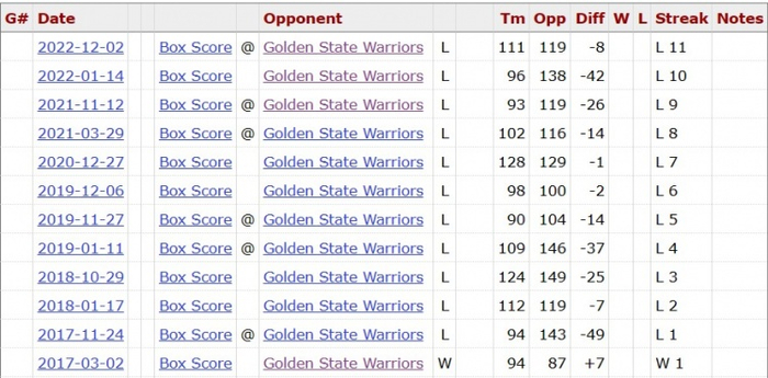 据统计,本场比赛之前,公牛面对勇士已经遭遇11连败,上一次赢球还是在2017年3月2日。