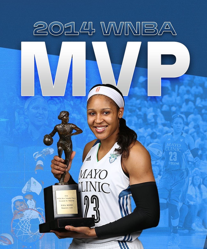 2014赛季,玛雅以压倒性优势获得常规赛MVP和得分王,成为WNBA史上最年轻的同时拥有总冠军、MVP、FMVP的球员。
