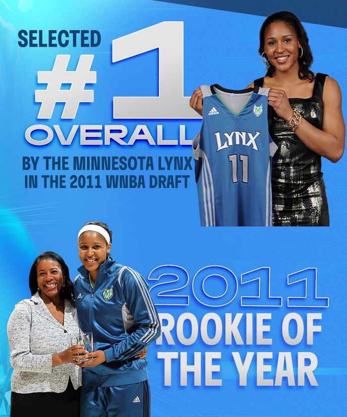 玛雅-摩尔在2011年WNBA选秀大会上以状元秀的身份被明尼苏达山猫队选中,该季,她成为了WNBA史上第二个在同一年获得最佳新秀及总冠军的球员。
