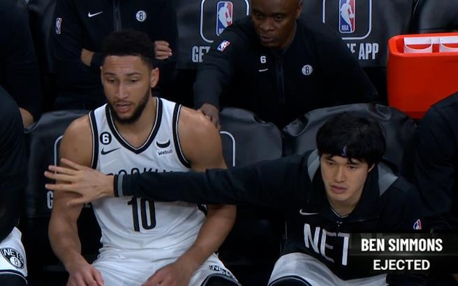 直播吧1月20日讯 篮网客场挑战太阳,本-西蒙斯在第三节初段被驱逐。
