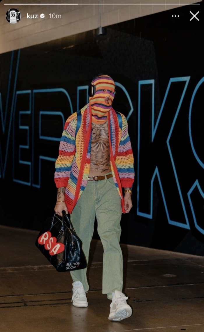 谈到本场赛前自己的“彩虹穿搭”,库兹马用“现象级的(phenomenal)”一词来形容自己的穿搭。