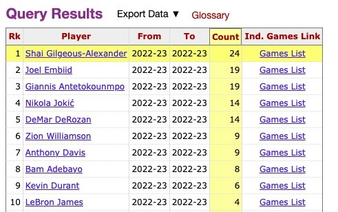 据统计,本场比赛是亚历山大本赛季第25次在三分出手数少于5次的情况下砍下30+,为联盟本赛季最多。