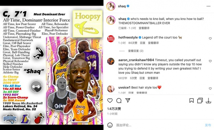 随后奥尼尔还在INS上晒出自己生涯荣誉图并再次怼道:“当你知道怎么打球时,谁还需要懂球啊?史上最具统治力的球员”