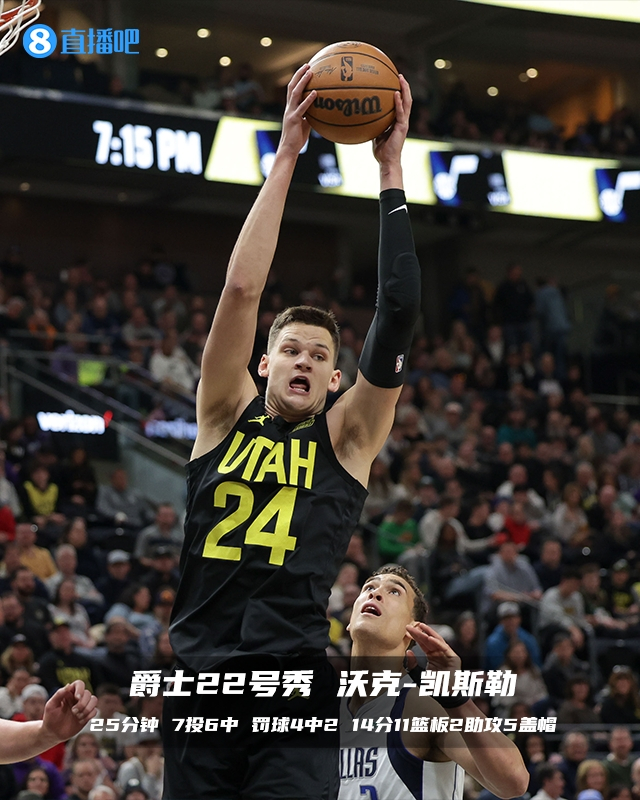 24.8分钟 14投3中 三分4中0 罚球4中3 9分7篮板3助攻1抢断