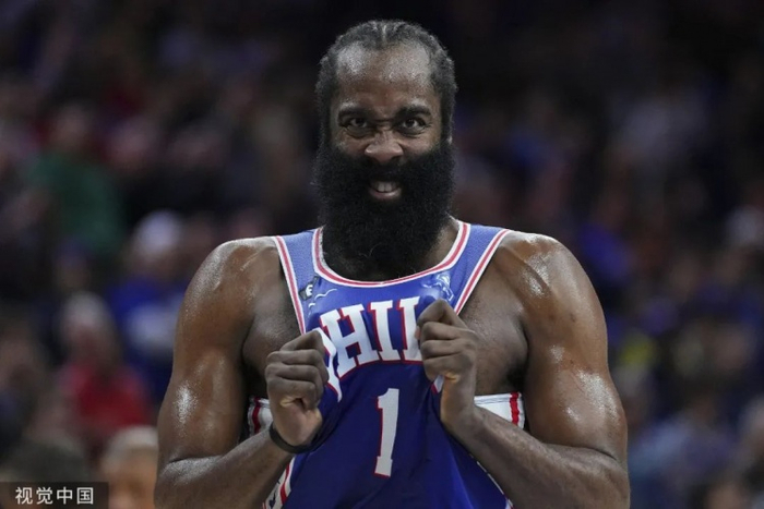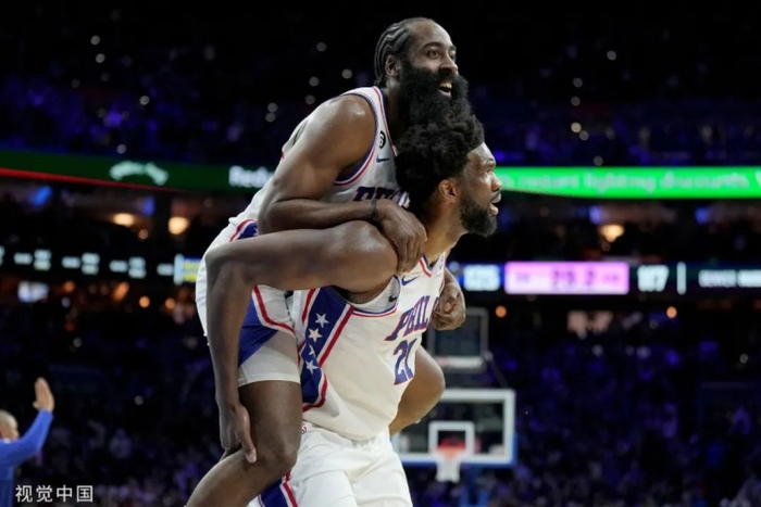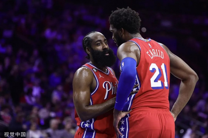 两人同时在场时,恩比德的真实命中率高达65.5%;哈登不在场的时候,恩比德的真实命中率仅为60.8%。