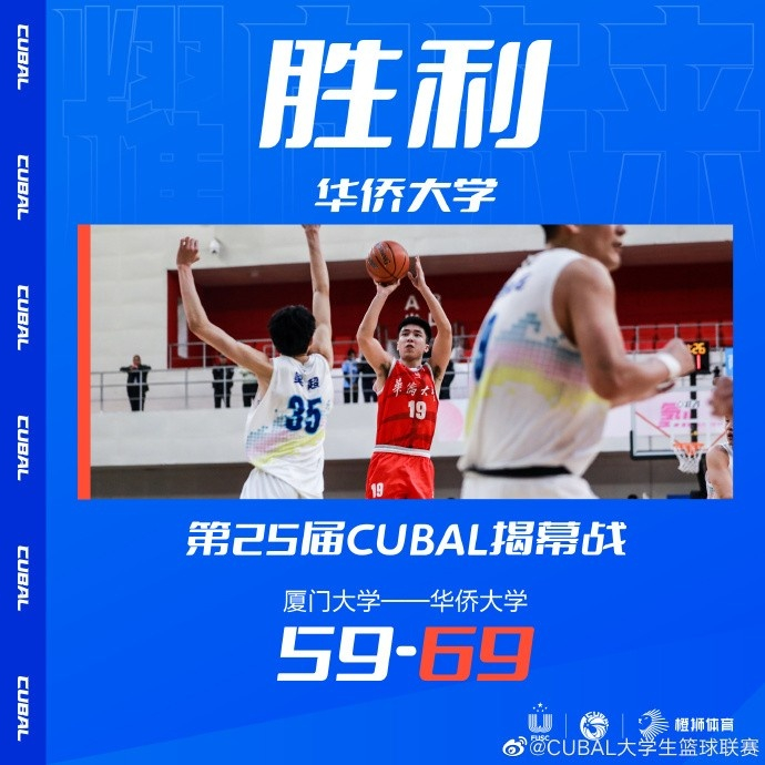 直播吧2月18日讯 第25届CUBAL大学生篮球联赛揭幕战,华侨大学69-59战胜厦门大学,蝉联福建赛区冠军。