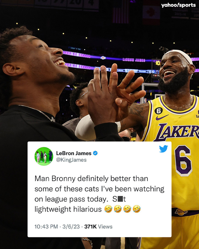詹姆斯写道:“兄弟,我今天在League Pass(NBA官方观看平台)上看球了,布朗尼绝对比有些阿猫阿狗要强。有点TM搞笑🤣🤣🤣🤣。”
