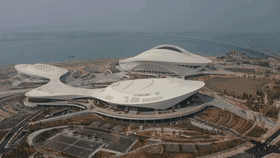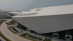 独特的外观造型是吸引眼球的看点,也是施工中的难点:整体建筑结构最大曲度超70度,将一座拥有7万吨“钢铁骨架”巨大建筑“凹出”这般造型并不容易;凑近看,看似光滑的外立面实则是一块块铝制幕墙拼接而成,幕墙数量甚至达到8000余块,将它们尽数铺上约4.17万平方米的建筑外幕墙已属不易,再加上施工时需对精度严格把控,更显难度。