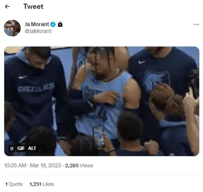 赛后,莫兰特第一时间发布了一张狄龙跳舞的GIF图庆祝,但随即删除。