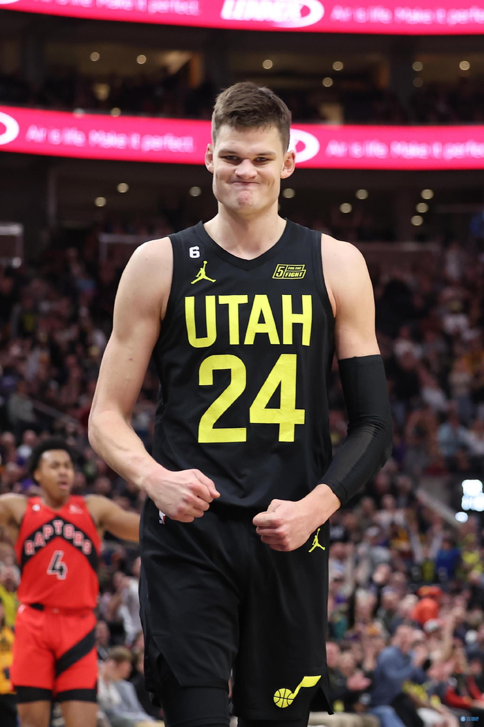 此役,爵士22号秀中锋凯斯勒出战30分钟,6投4中,罚球4中2,得到10分8篮板2助攻5盖帽。