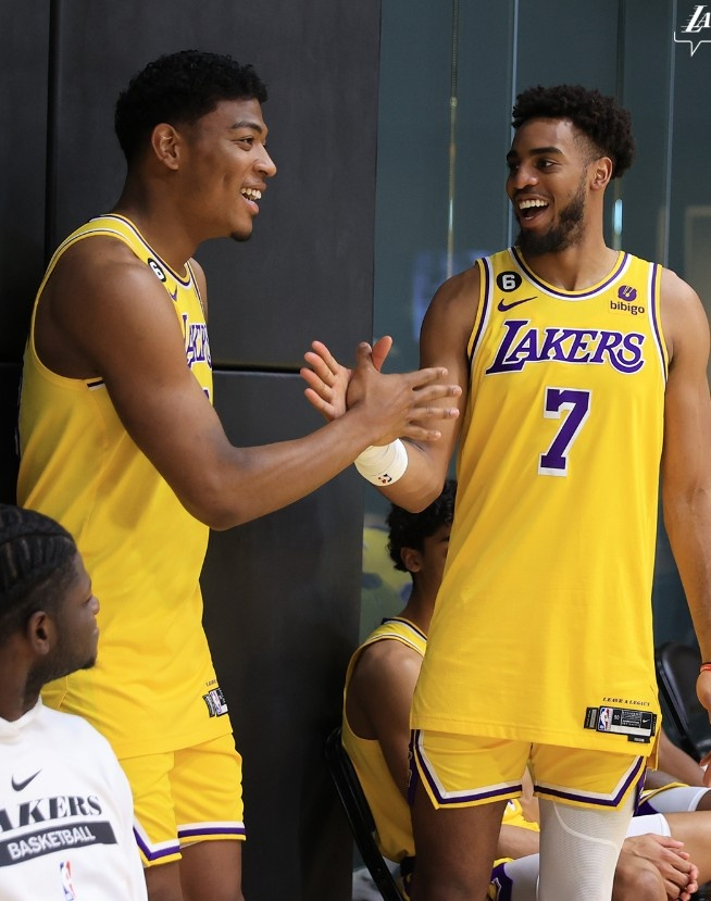 视频中湖人全员出镜,詹姆斯、班巴等伤员,以及被下放至发展联盟的小皮蓬、斯威德均在列。
