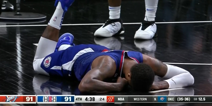 直播吧3月22日讯 NBA常规赛,快船100-101不敌雷霆,乔治在末节争抢篮板落地时右腿反关节受伤,被搀扶回更衣室,随后退出比赛。