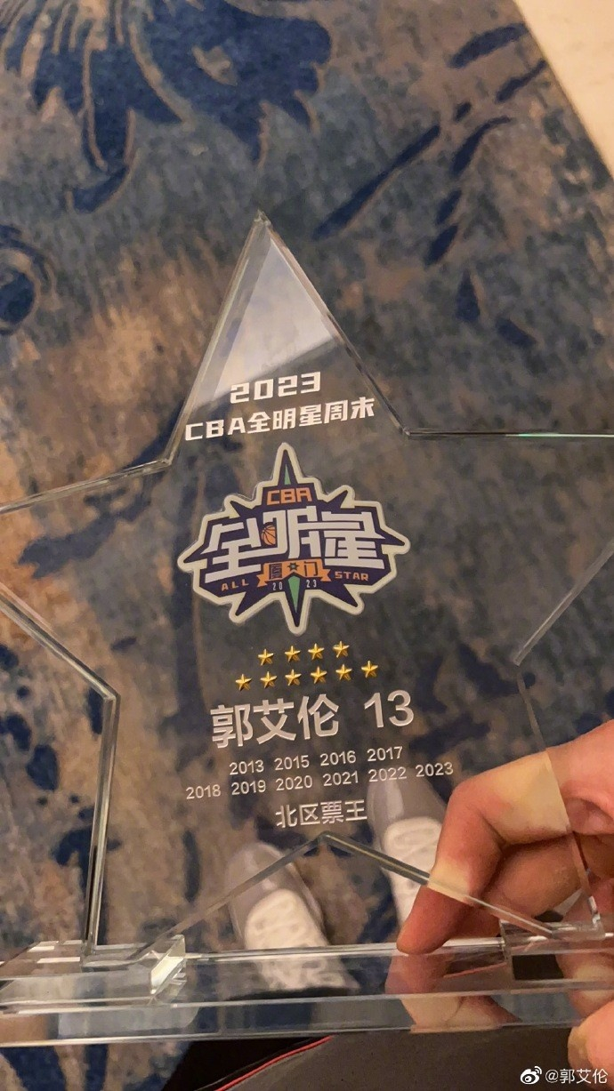 郭艾伦更博晒北区票王奖杯:十年青春年华 一晃都十八了