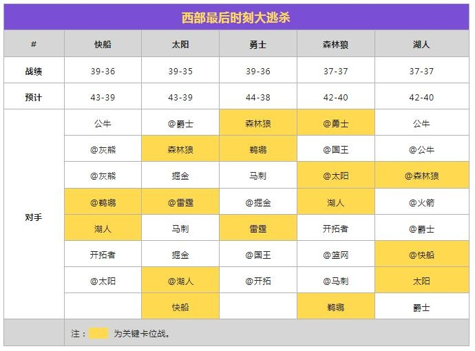 目前西部有森林狼、湖人和鹈鹕3队都是37-37,其中鹈鹕大胜快船后已经4连胜。此前几场鹈鹕的赛程比较有利,连续6场对手都比较弱,最后8场卡位战比较关键,尤其是再战快船、客场对勇士和森林狼,他们决不能把希望寄托在锡安伤愈归来上面。