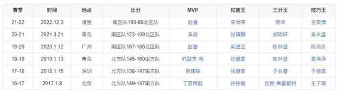 相关新闻:CBA全明星正赛今晚举行 此前北区已经连续5年输给南区