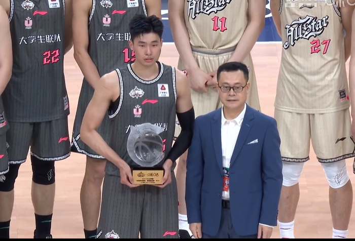 代表大学生联队出战的清华大学球员邹阳本场出战26分29秒,14投7中,三分6中1,罚球2中2,砍下17分10篮板4助攻5抢断的亮眼数据,当选本场比赛MVP。