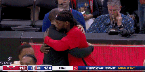 老友相见!贝弗利赛后和快船众将&教练组一一拥抱
