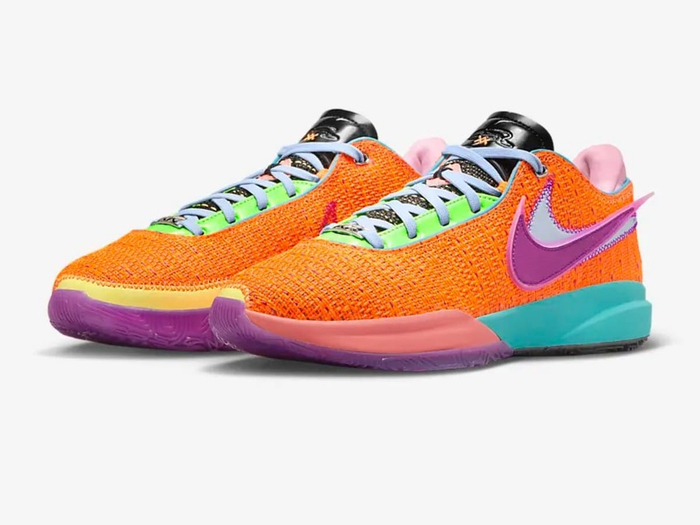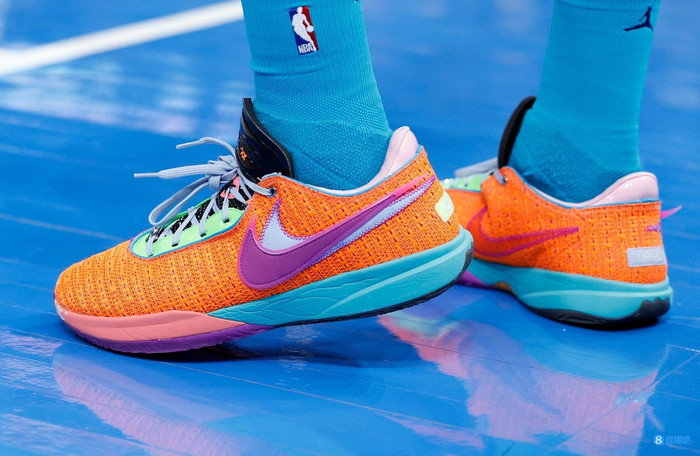 此役,黄蜂前锋PJ-华盛顿上脚詹姆斯的第20代签名鞋——NIKE LeBron 20‘Chosen 1’(天选之子)配色战靴。