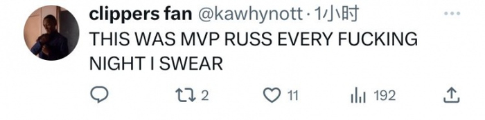 @clippers fan:勿6!这也就是曾经的MVP版本威少家常便饭的表现而已,我对天发誓!!!