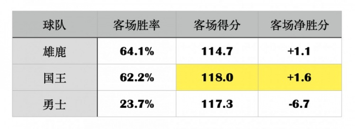 本赛季的国王队对标的应该是巅峰时期的勇士,而不是同期在西部第6的勇士队。因为这赛季的国王队怎么看都是比他们的邻居更强的团队,尤其是在客场。