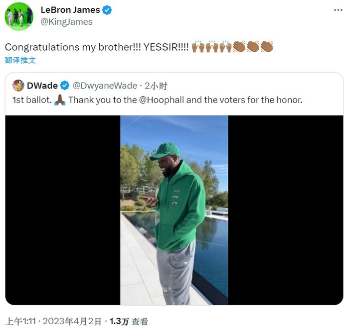 詹姆斯祝贺韦德入选名人堂:恭喜我的兄弟!YESSIR!👏🏾