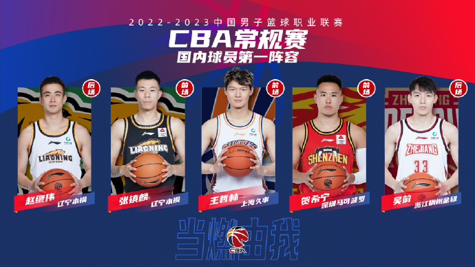 国内球员第一阵容:王哲林(上海久事)、张镇麟(辽宁本钢)、贺希宁(深圳马可波罗)、赵继伟(辽宁本钢)、吴前(浙江稠州金租)。