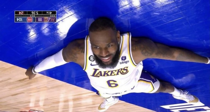 LeBron already in playoff form — a LeFuckYou 3, a crown, and down on the ground to fish for a flagrant. Lol