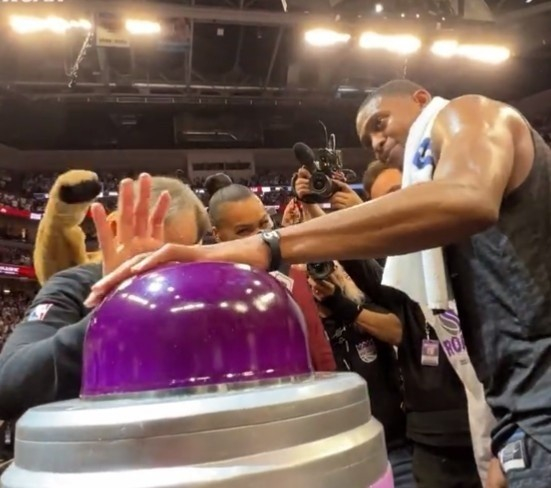 福克斯当晚的表现十分出色,拿到了38分5助攻。赛后福克斯走到球场中央,国王老板兰纳地夫正站在一个紫色按钮的旁边等着他。随着全场球迷一起倒数五秒,福克斯猛地按下按钮,一道巨大的紫色激光束从国王主场黄金一号中心球馆笔直地射向夜空。
