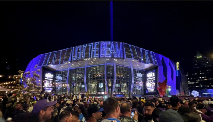从视觉上看,很简单。只要国王一赢球,这道激光束就会被点亮,射向球馆上方的夜空。如果国王在主场赢球,会由球员按下发射的按钮,被视作一种褒奖,还有一些50 Cent(说唱歌手)这样的名人也会参与其中。