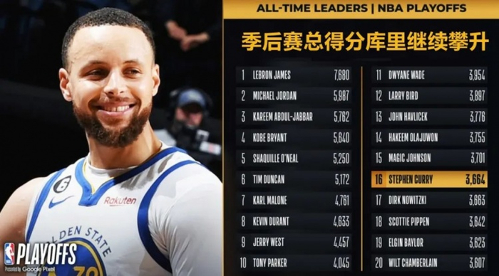 第四,最关键还是库里找回自己,三分12中6得36分,他的正负值高达+24。