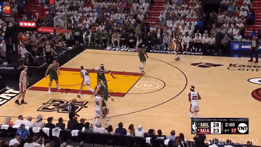 8比17落后,眼看要被甩开两位数;吉米右翼面对米德尔顿和扬尼斯的延阻,持球强突,在扬尼斯头顶扣了一个。