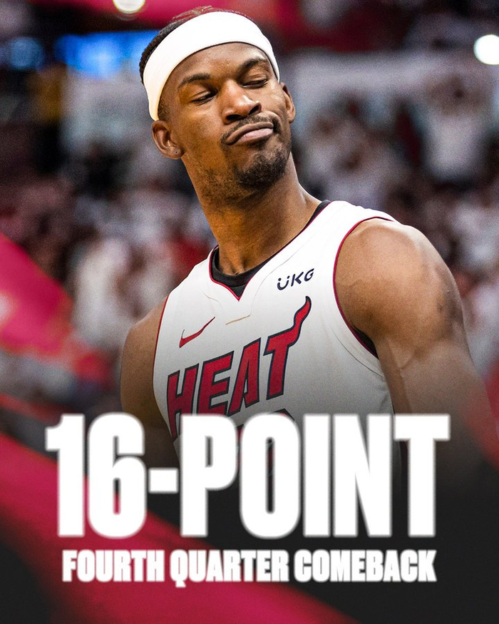 热火末节落后雄鹿高达16分,这也创造了系列赛终结战的末节最大逆转分差!
