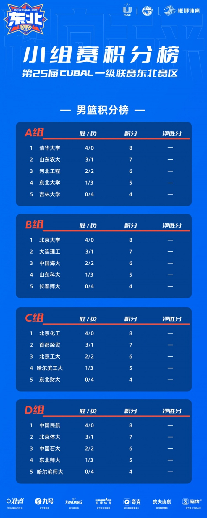 第25届CUBAL东北赛区小组赛排名出炉!明日16进8