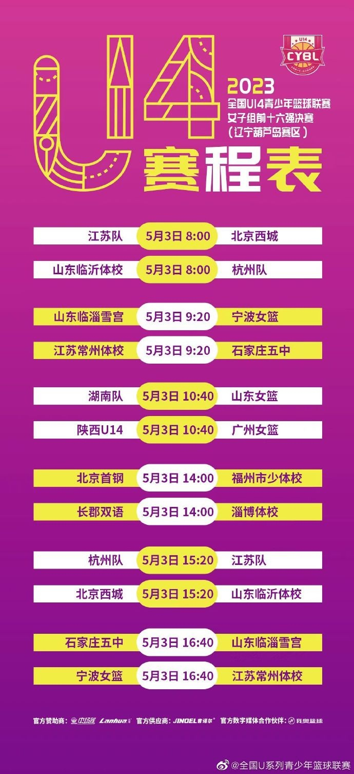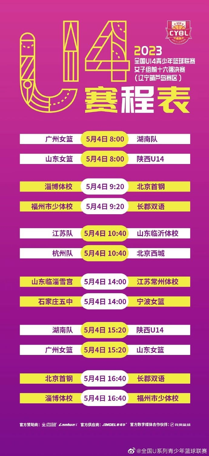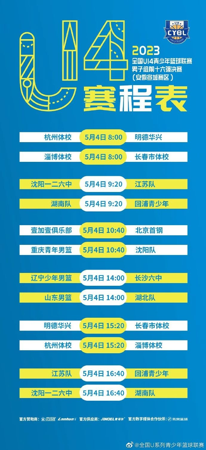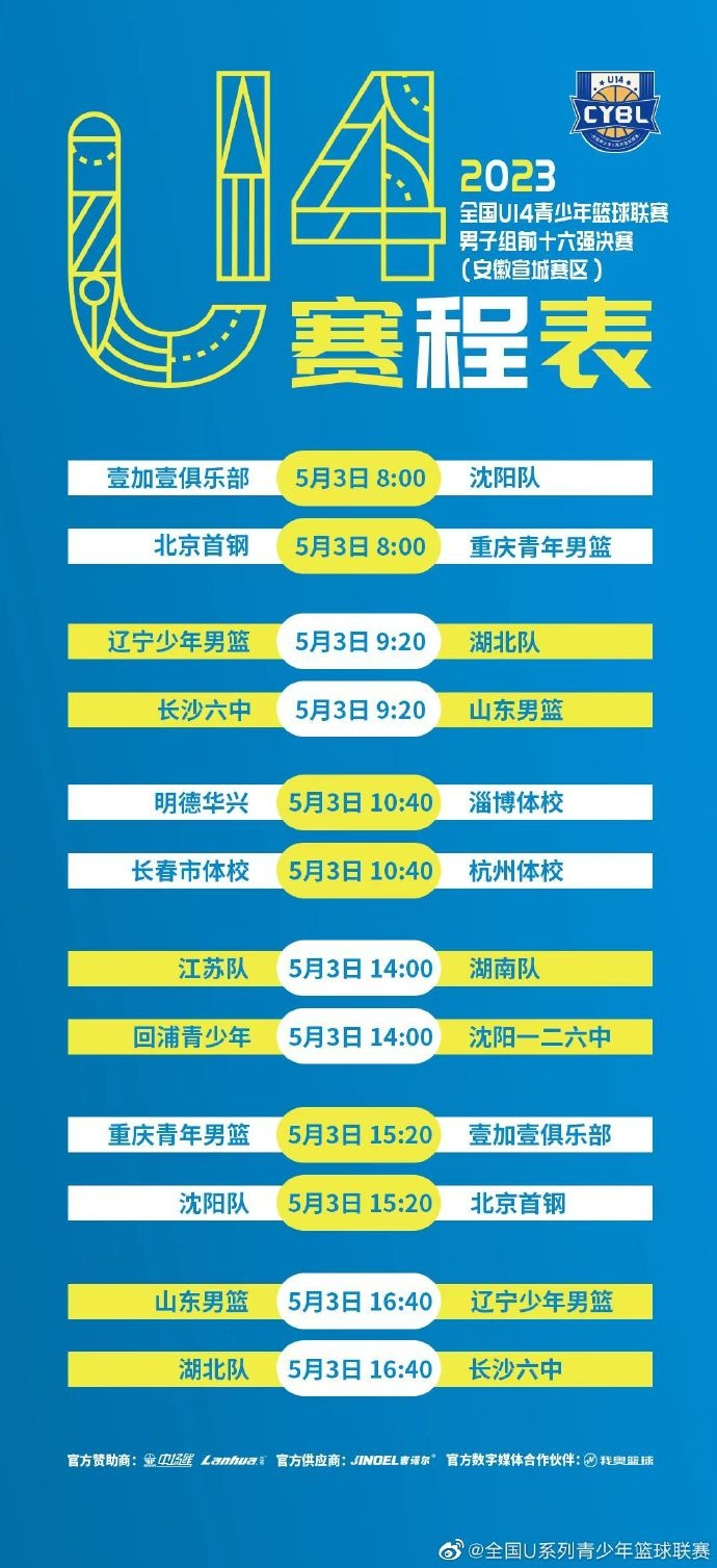 直播吧5月1日讯 5月2日至8日,2023年全国U14青少年篮球联赛前十六强决赛即将开始。