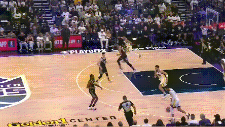 这球肉眼可见的不容易,但库里不想做其他尝试了,也等不起流畅出球、走球后的大空位回应或者空切。能自己来的,还是得自己来。于是,我们仿佛看到了19总决赛G3的重现,简单的起手式支持下,库里在对手的防守反应过来前就把分数拿到了。
