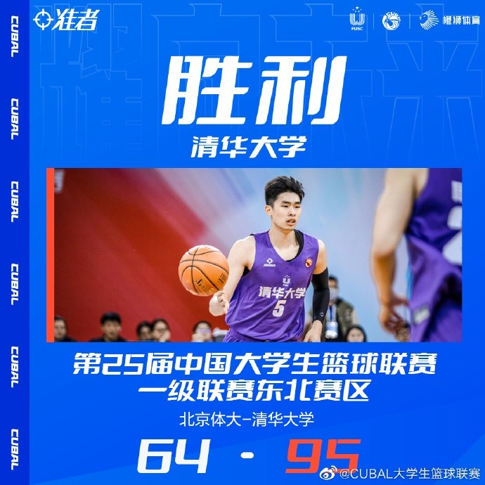 直播吧5月2日讯 CUBAL大学生篮球联赛进入1/4淘汰赛,北京体育大学对阵清华大学,1/8淘汰赛,北体31分大胜北工大,清华大学则是狂胜山科大68分。
