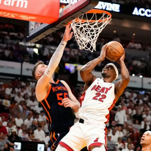 反过来,尼克斯没法只靠内线护筐和收缩防线去限制巴特勒和热火的进攻——他们不是“直来直往”的类型,而尼克斯是一套按死“铁匠和憨憨”的防守逻辑。尼克斯需要指望热火三分不准,让他们漏掉的三分线获得收益,然而自己投得比热火更不准,这就很难打了。