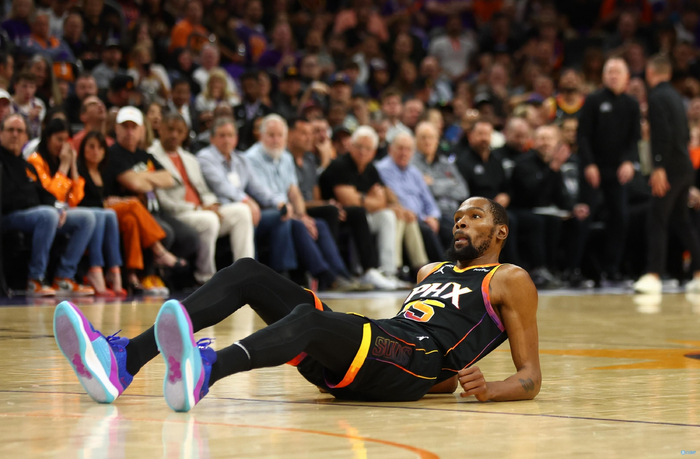 太阳双星进攻频繁单打,防守端也倾尽全力,攻防两端都消耗巨大,板凳单薄不得不增加杜兰特和布克的出场时间维持场上强度,一旦双星疲惫攻坚效率下降,太阳进攻也就自然呈现了断崖式下落。