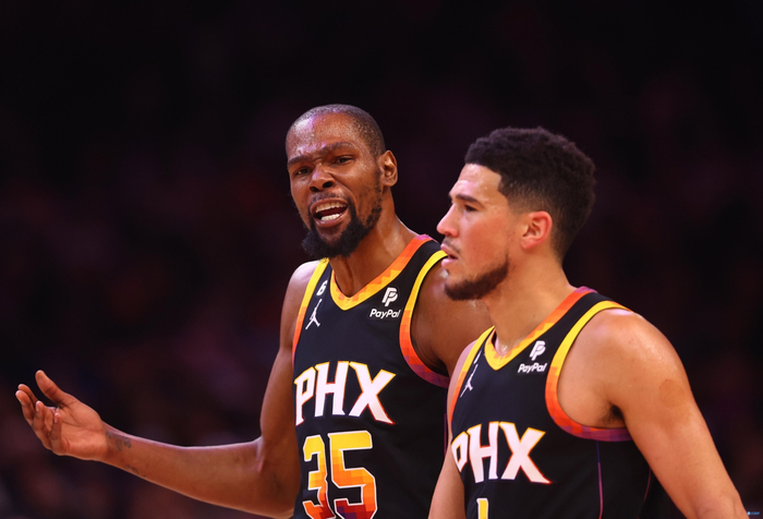 杜兰特和布克奋勇卓绝的半转换单打死战不退,遇夹击出球找沙梅特和艾顿吃饼,太阳面对困境战意昂扬,两队早早进入了肉搏白刃战。