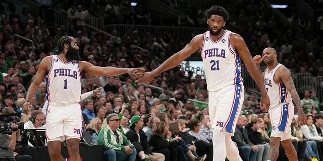 76人G5的进攻表现,有一种非常强烈的“老鹰打凯尔特人”的既视感,打中锋蹲坑非常坚决。马克西这场三分手感在线,是76人打蹲坑的排头兵。哈里斯也得到过清空一侧单吃中锋的机会,虽然他这场手感好跟针对性的关系不太大。哈登交出了既不拉胯也不暴走的均衡表现,得分与带动双拳出击,跟恩比德的挡拆打出了威力,多次给恩比德中距离甜点区做球成功,用另一种方式打了凯尔特人的中锋蹲坑。再配合马克西和哈里斯不错的状态,事实上达成了76人双大哥爆发的效果,这就在战略层面拉平了与凯尔特人的距离。