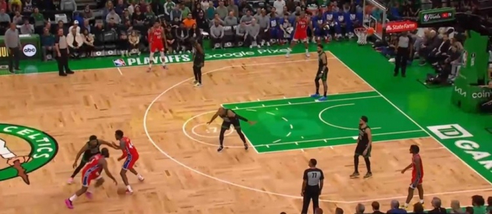 凯尔特人很快意识到哈登的出球会摧毁霍福德过高的站位,所以之后还是坚持了蹲坑。但这个改变挺有意思的——登哥凭本事打出了对手的尊重。