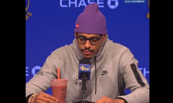 直播吧5月14日讯 今日,勇士队进行了赛季结束媒体发布会,乔丹-普尔接受了记者的采访。