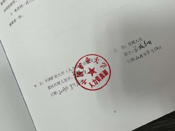 直播吧5月15日讯 今天,前CBA宁波男篮球员马振翔更新个人微博,晒出自己与母校中国矿业大学所签的合同。