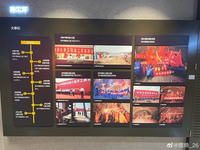 青岛胶州湾隧道于2006年12月27日举行动工仪式;2009年4月28日完成主体贯通工程,隧道全线贯通2011年6月30日通车运营。